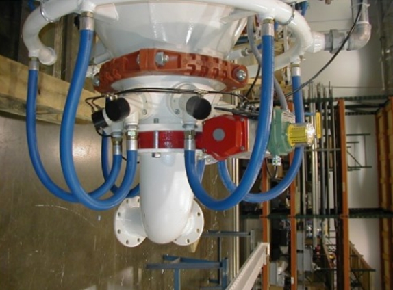 同时向下移动物料的周边部分,翻转滚动物料以达到均匀的混合。在混合环过程中,消耗掉的压缩空气通常通过一个仓顶除尘器进行料气分